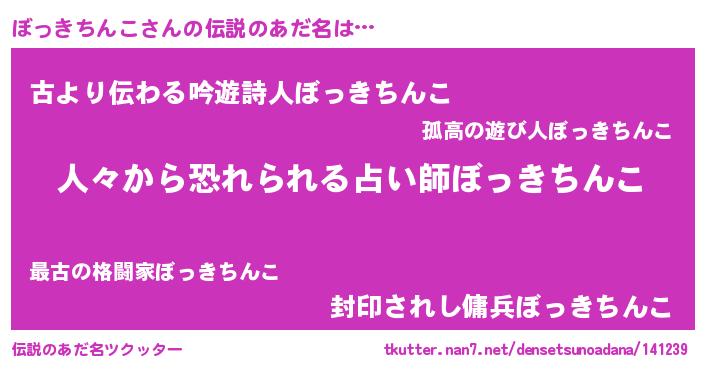 | 意味不明あだ名 | 『住所不定無職ぼっきちんこ(39歳)』 |