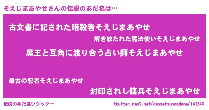 | 欧米人風あだ名 | 『そえじまあやせ・ステッグマイヤー』 |