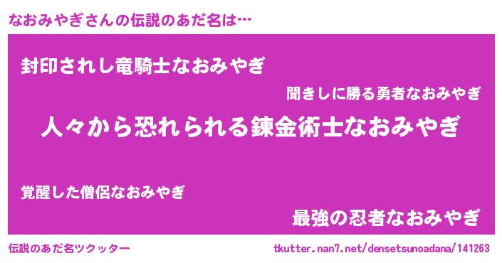 | 胡散臭い通販商品みたいなあだ名 | 『ガンによく効く冬虫夏草…その名も「なおみやぎ」』 |