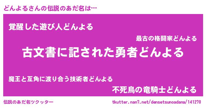 | ヒーロー風カッコイイあだ名 | 『ネオドンヨル』『最強戦士ドンヨル』 |