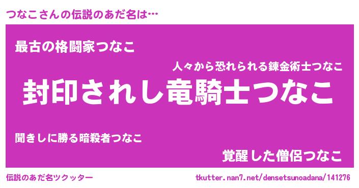 | ヒーロー風カッコイイあだ名 | 『スーパーツナコ』『ウルトラつなこマン』 |