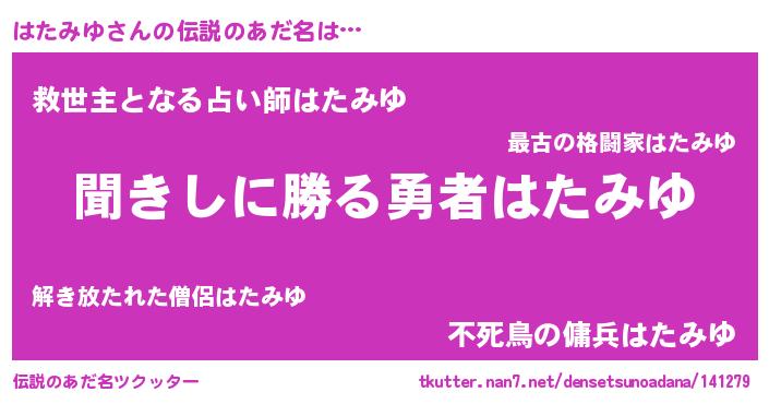 | 意味不明あだ名 | 『永久保存はたみゆ』『自称はたみゆ』 |