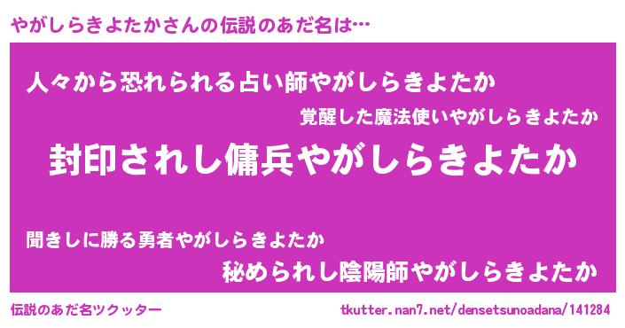 | 胡散臭い通販商品みたいなあだ名 | 『億万長者になれる水晶球…その名も「やがしらきよたか」』 |