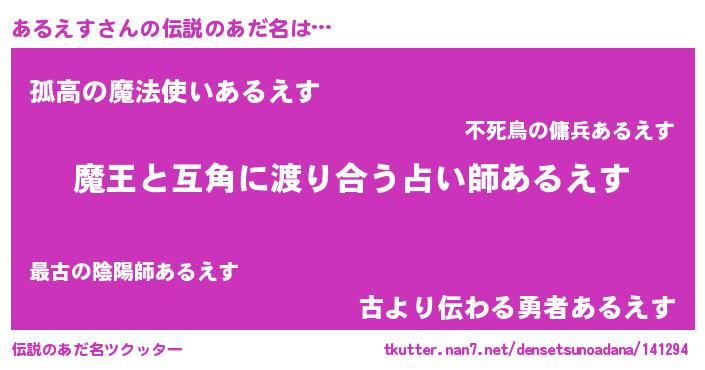 | 肩書あだ名 | 『あるえす大尉』『あるえす教授』 |