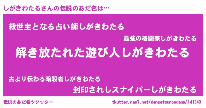 | 意味不明あだ名 | 『とにかく怪しいしがきわたる』 |
