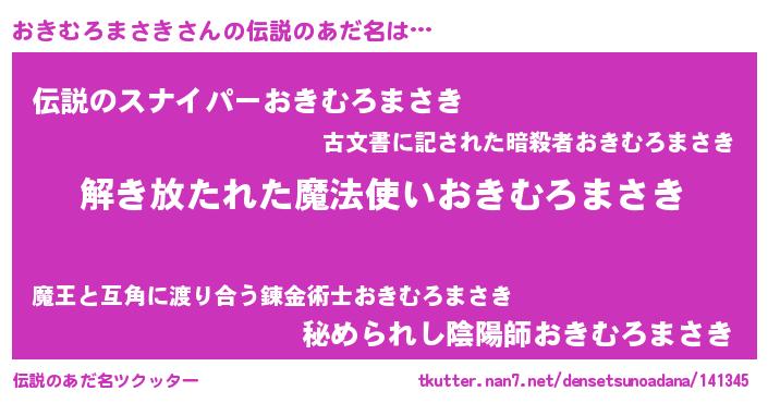 | ヒーロー風カッコイイあだ名 | 『幻影騎士オキ』『仮面オキダー』 |