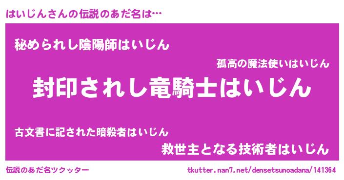 | ヒーロー風カッコイイあだ名 | 『スーパーハイジン』『仮面ハイダー』 |
