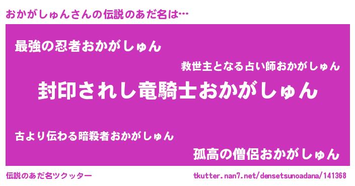 | 男性向けラノベタイトル風あだ名 | 『オカガシュンアートオンライン』 |