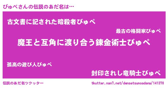 | ヒーロー風カッコイイあだ名 | 『仮面ビュダー』『天空の使者びゅぺ』 |