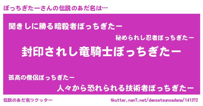 | 男性向けラノベタイトル風あだ名 | 『ボッチギターアートオンライン』 |