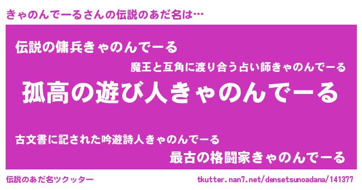 | 女子向けラノベタイトル風あだ名 | 『きゃのんでーるは平凡を望む』 |