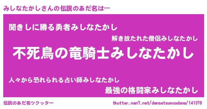 | ヘコむあだ名 | 『みしふぇ~』『みしなたかし(笑)』 |