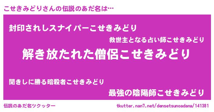 | ポケモン風あだ名 | 『ヒコセキミドリ』『コセチュウ』 |