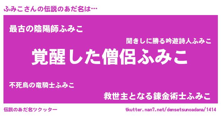 | 男性向けラノベタイトル風あだ名 | 『ふみこの嫁は女の子じゃないと思った?』 |