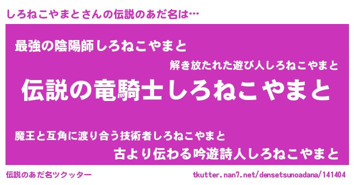 | 男性向けラノベタイトル風あだ名 | 『しろねこやまとの憂鬱』 |