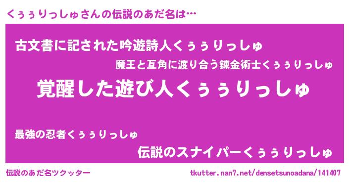 | 意味不明あだ名 | 『自称くぅぅりっしゅ』 |