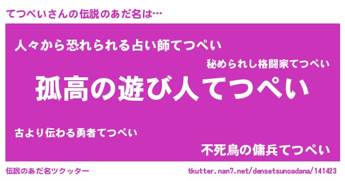 | 女子向けラノベタイトル風あだ名 | 『てつぺいなんてお断りですっ。』 |