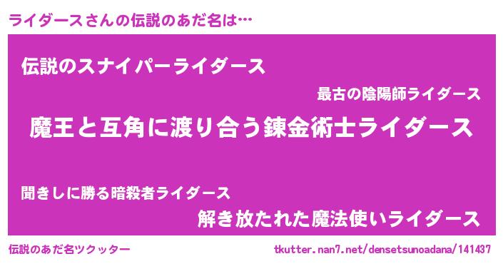 | ヒーロー風カッコイイあだ名 | 『慈愛の使者ライダース』『仮面ライダー』 |