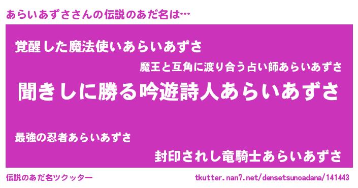 | 意味不明あだ名 | 『住所不定無職あらいあずさ(6歳)』 |