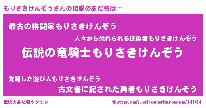 | 男性向けラノベタイトル風あだ名 | 『もりさきけんぞうの憂鬱』 |