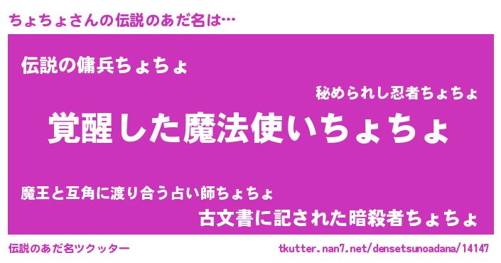 | 男性向けラノベタイトル風あだ名 | 『ちょちょに滅ぼされるだけの簡単なお仕事です』 |