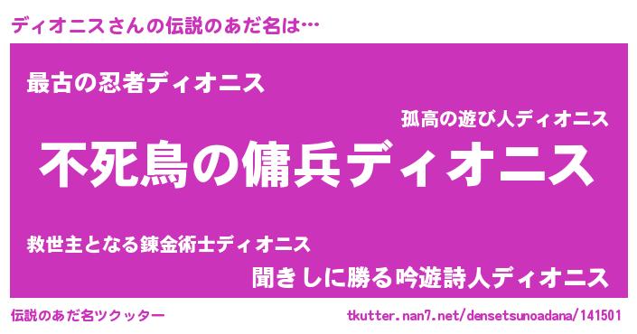 | 意味不明あだ名 | 『ペロリンディオニス』『自称ディオニス』 |