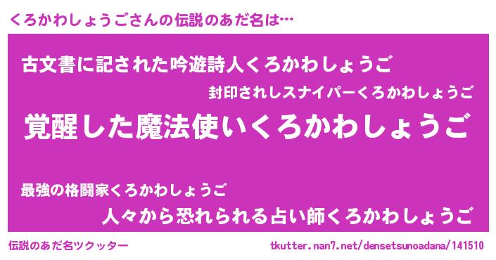 | ヘコむあだ名 | 『くろ太郎』『くろかわしょうご(笑)』 |