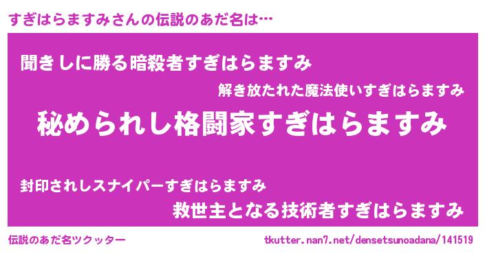 | ファンタジー風あだ名 | 『エターナルスギハラマスミー』 |