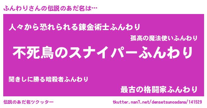 | 胡散臭い通販商品みたいなあだ名 | 『世界中を虜にした世界で10本だけ現存している希少なブランデー…その名も「ふんわり」』 |