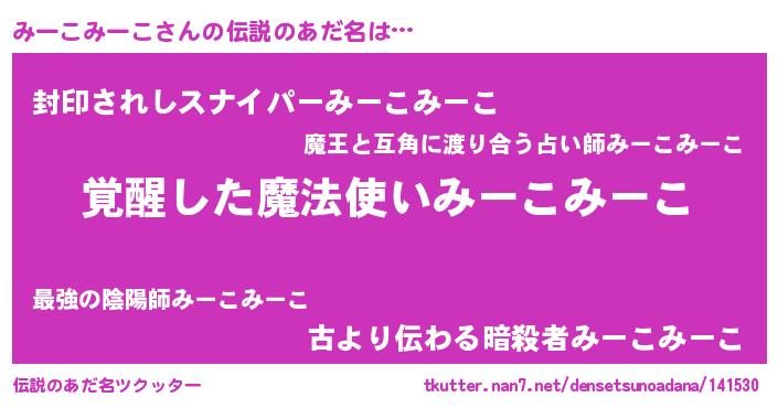 | 女子向けラノベタイトル風あだ名 | 『みーこみーこ様がみてる』 |