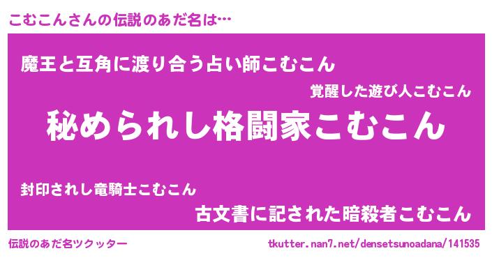 | ヒーロー風カッコイイあだ名 | 『ウルトラこむこんマン』『仮面コムダー』 |