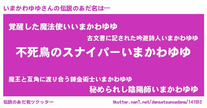 | ヒーロー風カッコイイあだ名 | 『スーパーイマカワユユ』『炎刃騎士イマ』 |