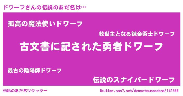 | 意味不明あだ名 | 『永久保存ドワーフ』『自称ドワーフ』 |