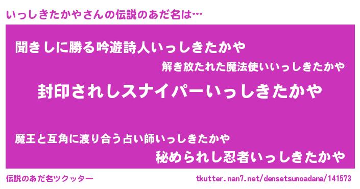 | 胡散臭い通販商品みたいなあだ名 | 『あなたにだけ特別に提供する世界で10本だけ現存している希少なブランデー…その名も「いっしきたかや」』 |