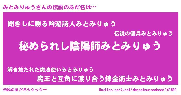 | ヒーロー風カッコイイあだ名 | 『ウルトラみとみりゅうマン』 |