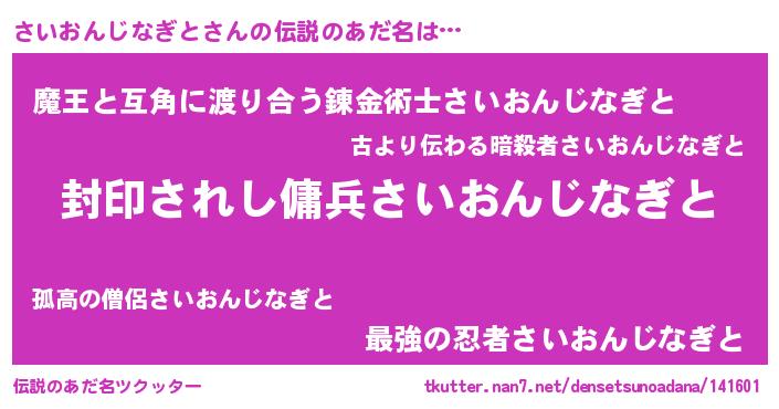 | 男性向けラノベタイトル風あだ名 | 『Re:さいおんじなぎとから始める異世界生活』 |