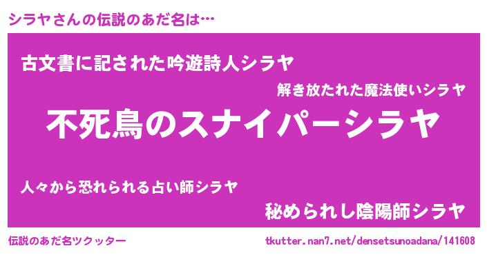 | 意味不明あだ名 | 『住所不定無職シラヤ(84歳)』 |