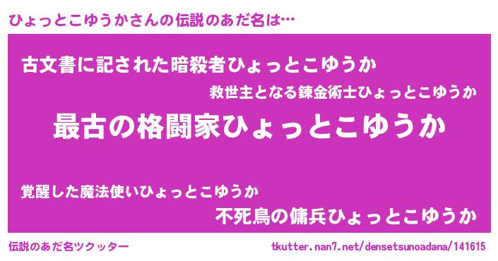 | ファンタジー風あだ名 | 『エターナルヒョットコユウカー』 |