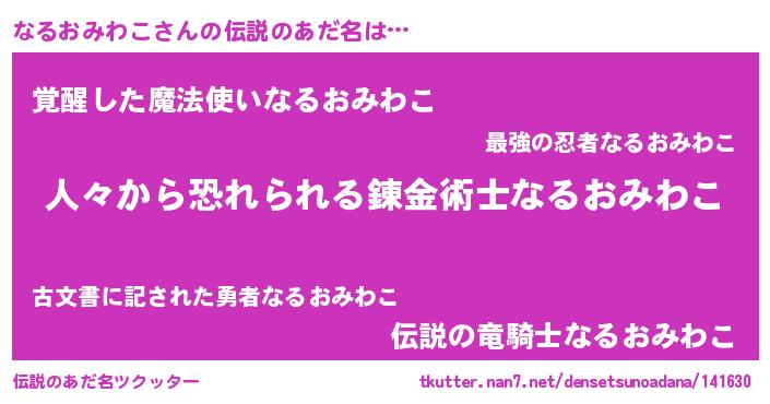 | 男性向けラノベタイトル風あだ名 | 『魔法科高校のなるおみわこ』 |