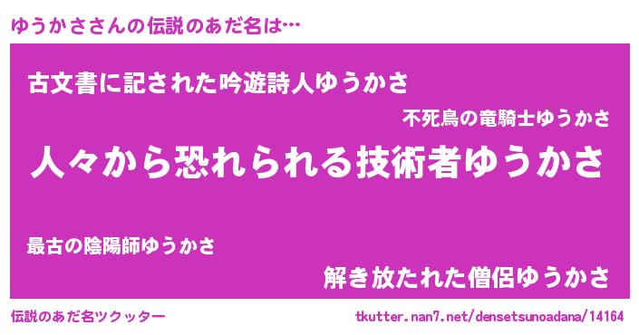| ヒーロー風カッコイイあだ名 | 『正義の使者ゆうかさ』『ネオユウカサ』 |