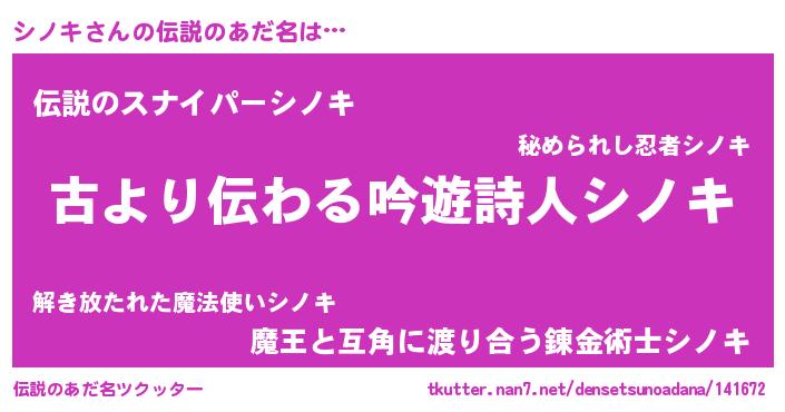 | ヒーロー風カッコイイあだ名 | 『ネオシノキ』『スーパーシノキ』 |