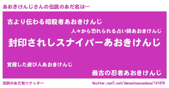 | 男性向けラノベタイトル風あだ名 | 『アオキケンジアートオンライン』 |