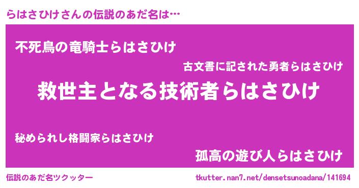 | 意味不明あだ名 | 『住所不定無職らはさひけ(13歳)』 |