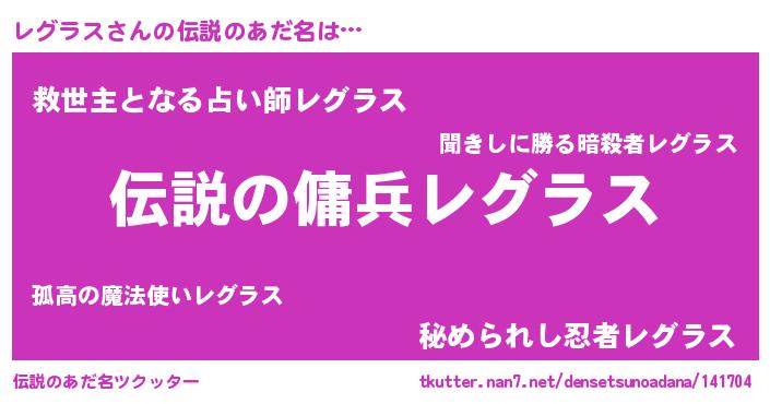 | 男性向けラノベタイトル風あだ名 | 『レグラスの憂鬱』『レグラススレイヤー』 |