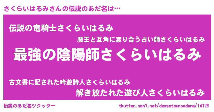 | 意味不明あだ名 | 『さくらいはるみフォーエバー』 |
