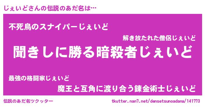 | 男性向けラノベタイトル風あだ名 | 『じぇいどという概念が存在しない退屈な世界 』 |
