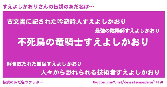 | 意味不明あだ名 | 『自称すえよしかおり』 |