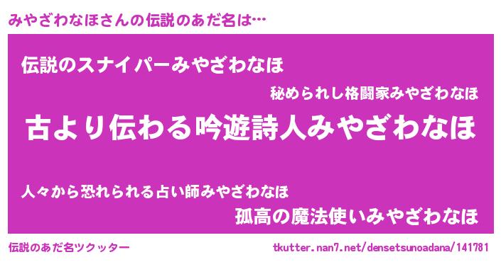 | 意味不明あだ名 | 『永久保存みやざわなほ』 |