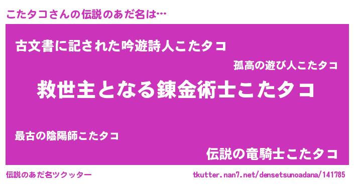 | ヒーロー風カッコイイあだ名 | 『天空の使者こたタコ』『ネオコタタコ』 |