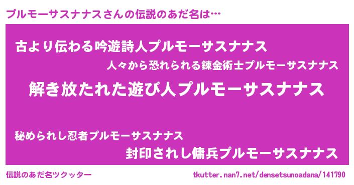 | 意味不明あだ名 | 『とにかく怪しいプルモーサスナナス』 |